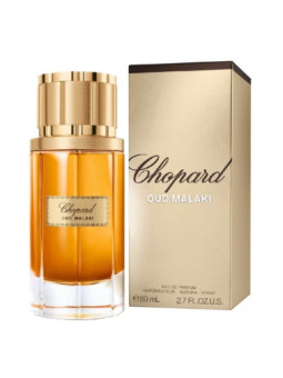 Hommage à l’Oud précieux d’OrientOud Malaki propose un voyage olfactif sublime et puissant jusqu’aux confins de l’Orient à la rencontre du bois le plus précieux et unique de la parfumerie orientale. Symbole d’opulence, évocateur d’un paradis luxuriant aux senteurs enivrantes, l’Oud est taillé par le maitre parfumeur Alberto Morillas pour en extraire son infinie sensualité. L’Oud, bois majestueuxSombre et racé, l’Oud est empreint de mystère. Son sillage immémoriel évoque les rituels les plus divins. Pour Oud Malaki, ce bois majestueux de caractère est magnifié pour laisser transpercer la lumière. Un Oud à la sensualité fraîche et lumineuseFacetté par des notes vives de pamplemousses, de lavandes et d’armoises, Oud Malaki est une ode à ce bois sacré dont l’odeur épicée évoque les lumières mystérieuses d’Orient. Un accord de notes de tabac et d’épices sculptent le sillage profondément sensuel et noble de la fragrance. Un flacon sublime à la croisée de l’Orient et de l’OccidentLes flacons de la collection Malaki symbolisent la rencontre entre somptuosité orientale et patrimoine joaillier de la maison Chopard. Pour Oud Malaki, le flacon iconique à la silhouette élancé se pare d’un capot, d’une bague et d’une étiquette en or. Le flacon renferme un jus doré lumineux et profond à l’éclat intense. Famille olfactive - Oriental boisé